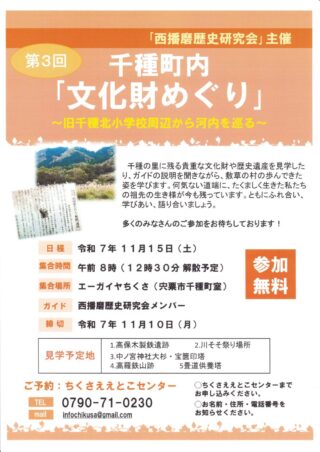 「西播磨歴史研究会」主催の【第3回千種町内文化財めぐり】が開催されます。