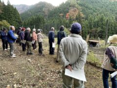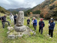 第3回千種町内文化財めぐり 2025/11/24 イベント, ブログ 11月15日土曜日、晴天の下、3回目となる「千種町内文化財めぐり」が開催されました。 リピーターの方も多く、町内外から多くの参加者がありました。 次回は、来春、奥西山をめぐるコースの予定とお聞きしました。 高保木製鉄遺跡 出合橋 川そそ祭り 中ノ宮神社 県指定天然記念物「中宮神社の大杉」 河内宝篋印塔(2基) 高羅鉄山遺跡 畳道供養塔
